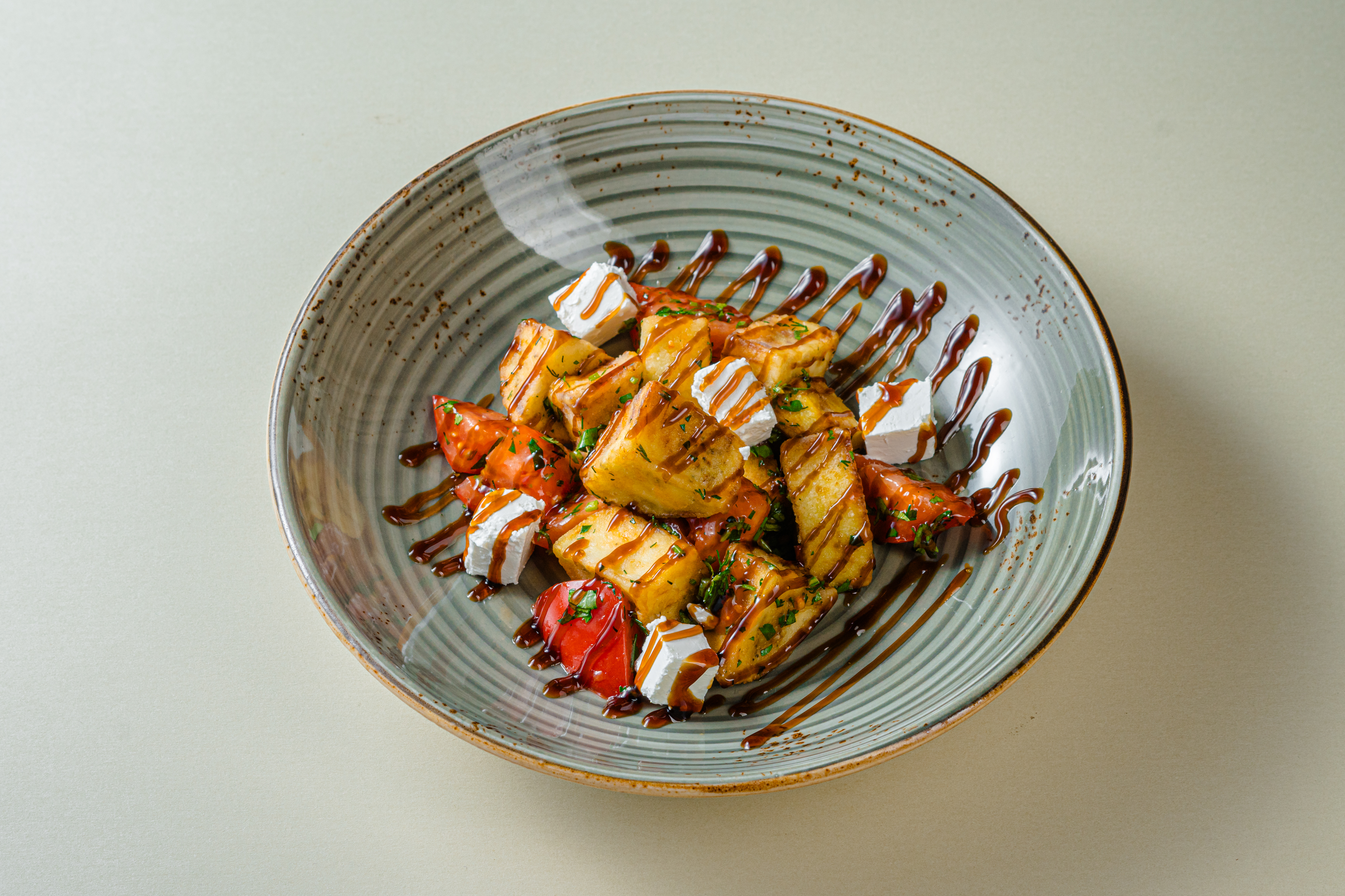 Сладкие помидоры с хрустящими баклажанами в кисло-сладком соусе. С добавлением сыра.