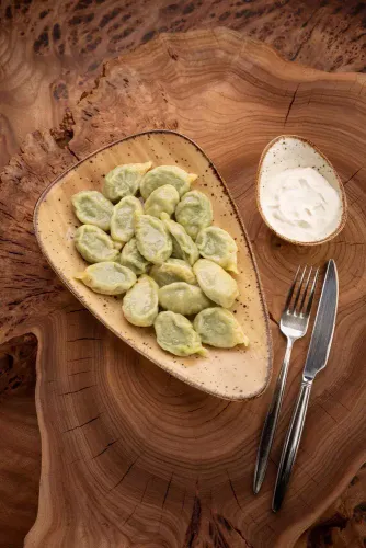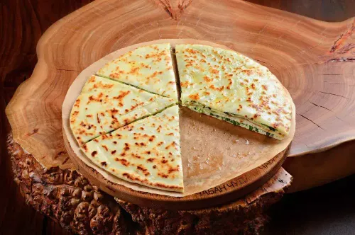 Чуду с начинкой из тушёного шпината, с добавлением зелёного лука, кинзы и специй.